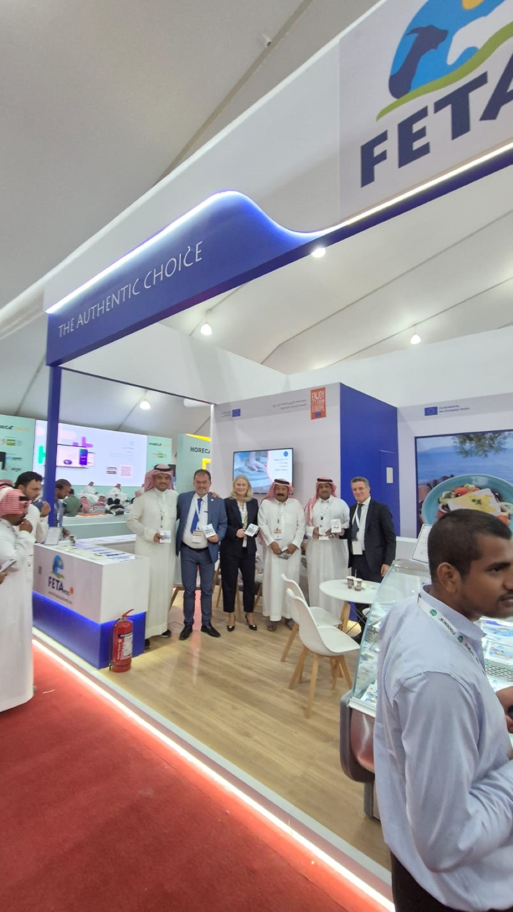 Feta PDO promotional program proudly participated in the prestigious international exhibition Saudi Horeca 2024, held from 25–27 November 2024 in Riyadh, Saudi Arabia. This participation was part of the European program, “Information provision and promotion measures on Feta PDO in the United Kingdom and Saudi Arabia,” aiming to showcase the unparalleled quality and authenticity of Feta PDO cheese (Protected Designation of Origin).